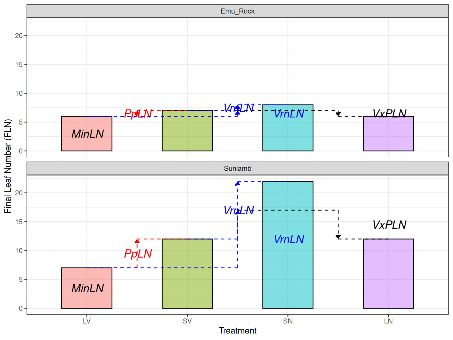 | VxPLN | Change in FLN from photoperiod effect under un-vernalised, long-day growth | -2.0 |
